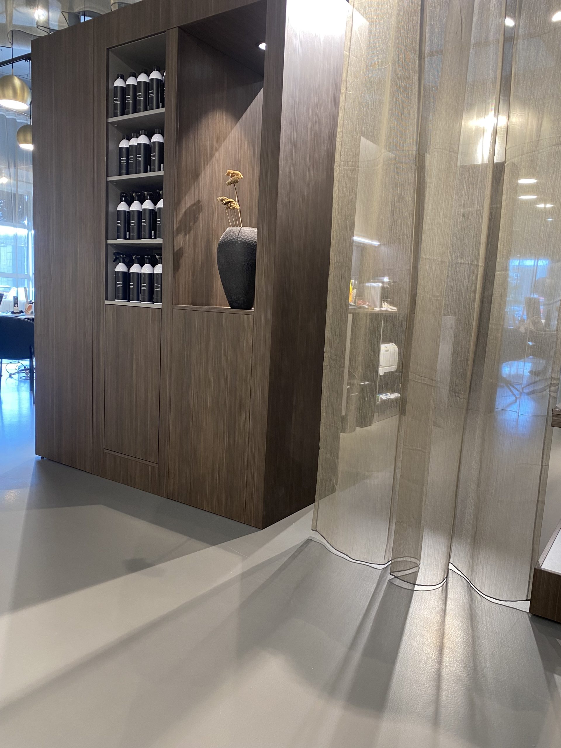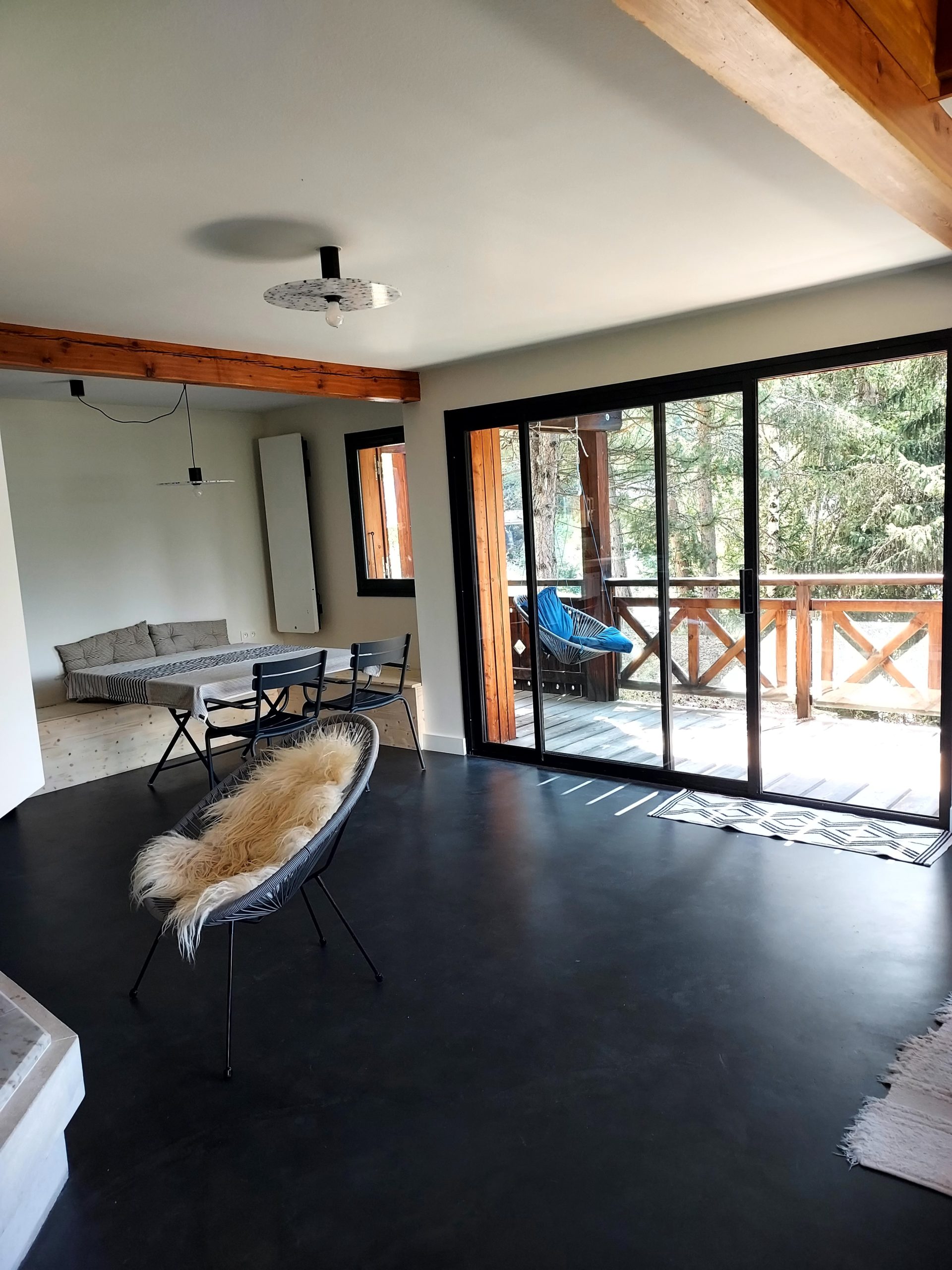 Grâce à ce revêtement hautement qualitatif, la matière donne l’impression de passer de pièce en pièce et met en valeur un espace de vie agrandi.